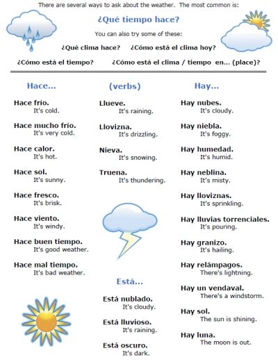 - The weather – El tiempo – 30 questions