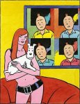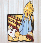 La presente ilustración agrupa a cuatro creadores del siglo XX: El pintor e ilustrador Roy Lichtenstein, el escritor Frederic Tuten, el pintor Matisse y el dibujante Hergé.