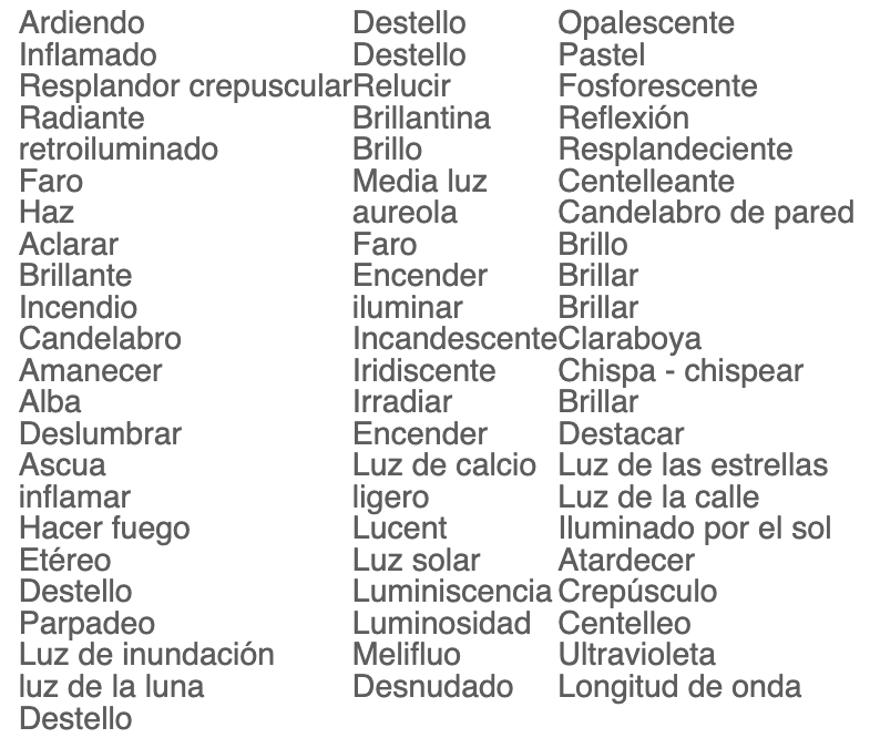 Palabras relacionadas con la luz